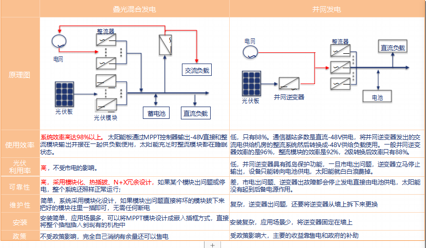 叠光⽅案与传统并⽹⽅案在通信基站中应用比较